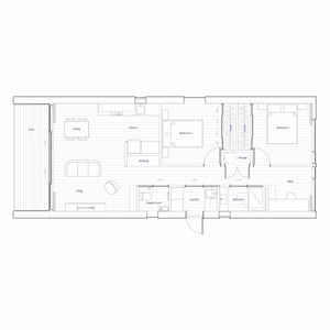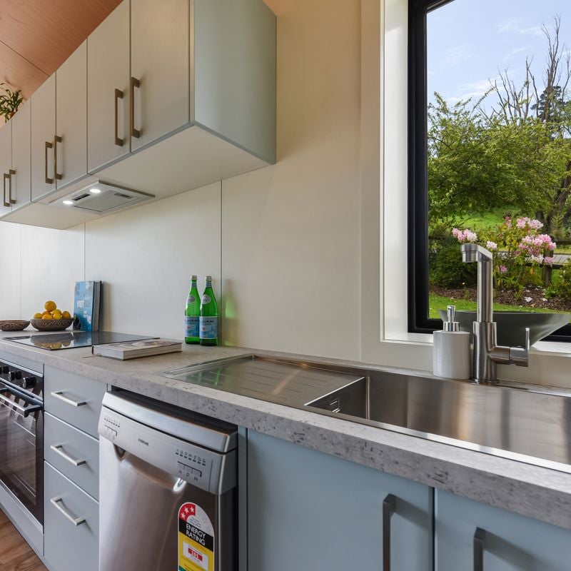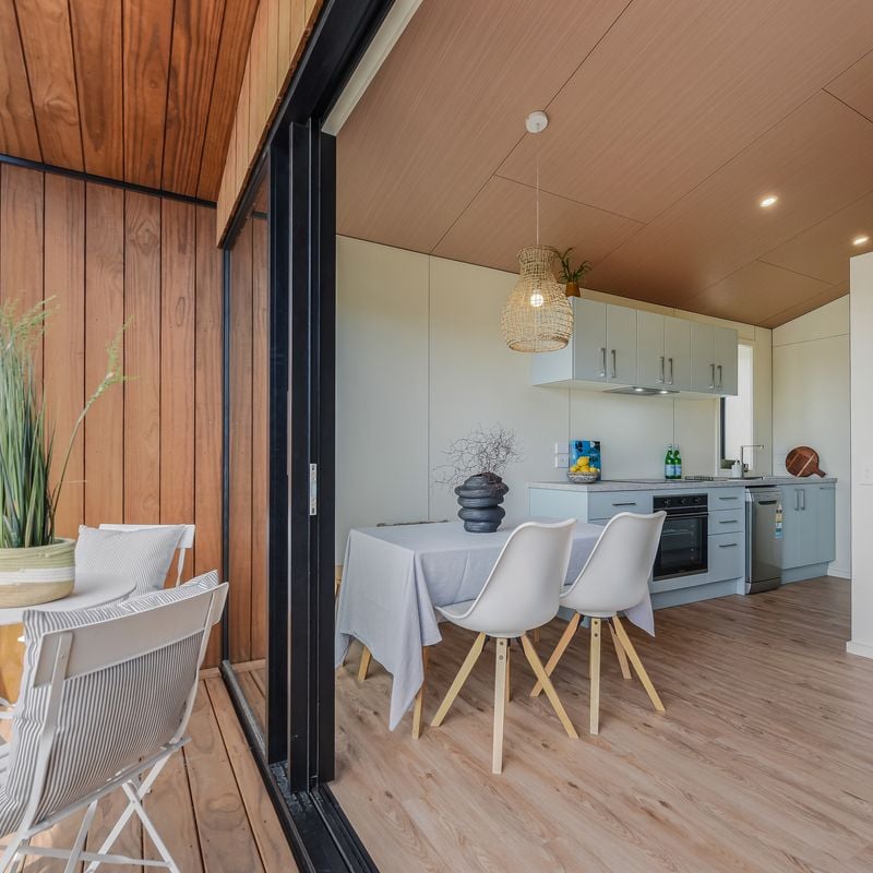 The Hampshire brings generous, flexible living to a smart 70m² design. Featuring two spacious bedrooms with double wardrobes and a dedicated office complete with built-in desk, it’s perfect for work, rest, and everything in between. Thoughtful touches, from ample storage and a separate laundry to a bathroom with large shower and powder room, make everyday living effortless. Soaring raked gable ceilings and expansive sliding doors fill the home with natural light, while the 10m² deck extends your living outdoors for year-round enjoyment.